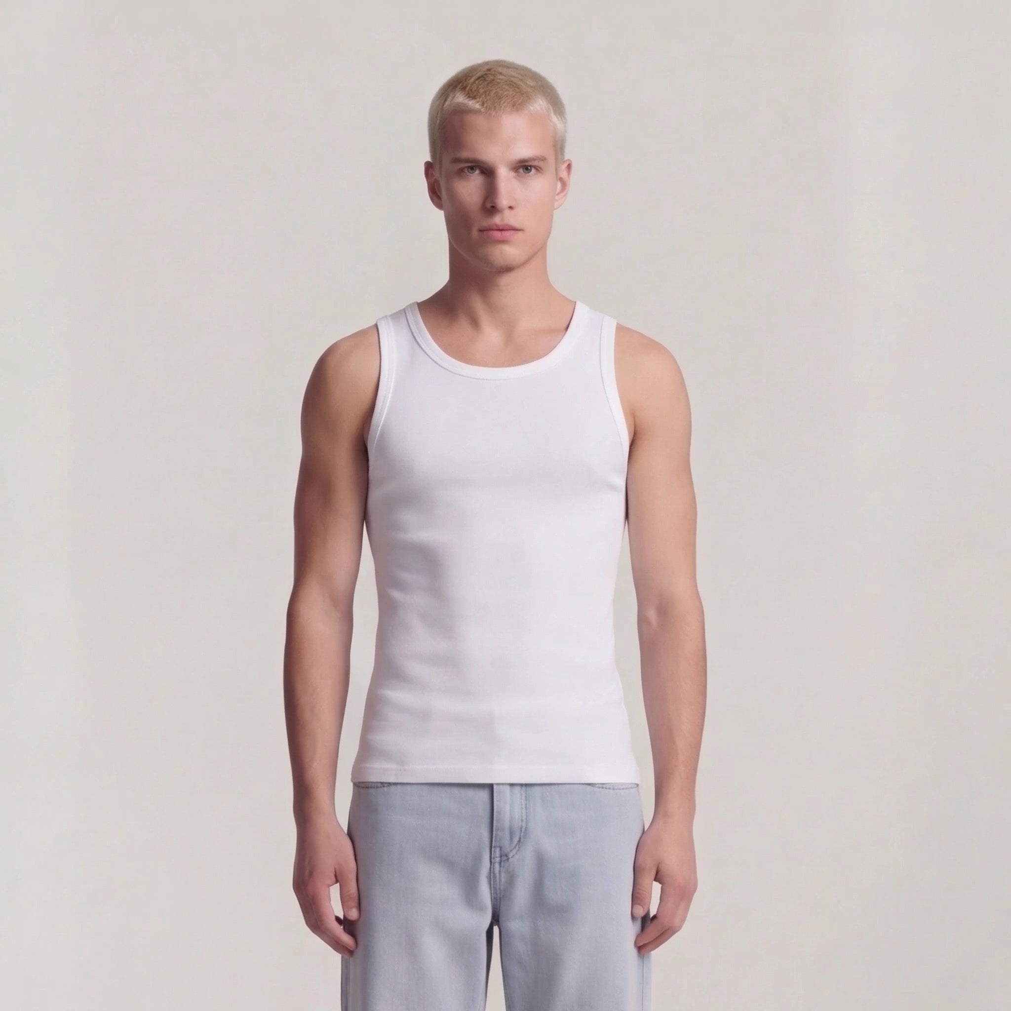 Basic Mens Tank Top " Oyu " Raw White