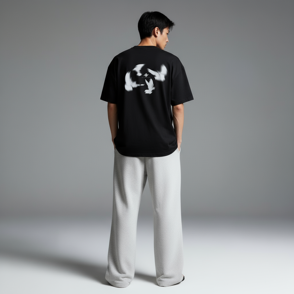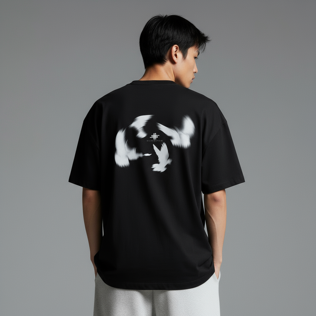 Black "Birds 2.0" Heavy Oversize Unisex T-shirt SV-163